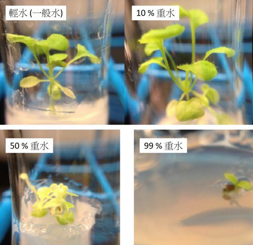 如果我们以不同含量比例的重水来培养植物,并观察其成长状况,就能很清楚的了解重水对植物带来的影响了。实验结果发现重水的含量愈高,植物生长会明显放慢,而重水的比例超过一半时,植物甚至会死亡 。